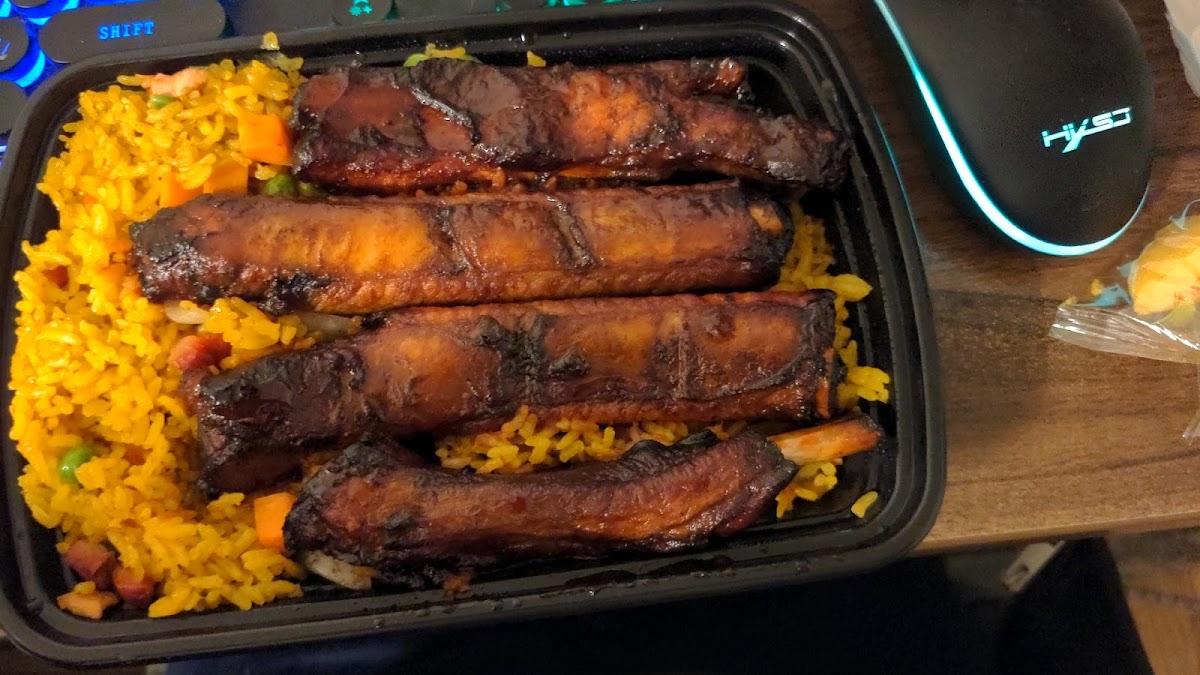 I got the barbecue ribs and the flavor is great, I'm not a big fan of peas in my fried rice but their fried rice is okay. The soup looks really good, and they gave me the crispy wonton noodles. They also let me swap my egg roll for a spring roll which I prefer so that was really nice. The people that work in that shop are super nice and very helpful. I found out that they do actually deliver within a 5 mi radius. I think it'll be easier for me to order delivery next time parking was a bit of a pain.